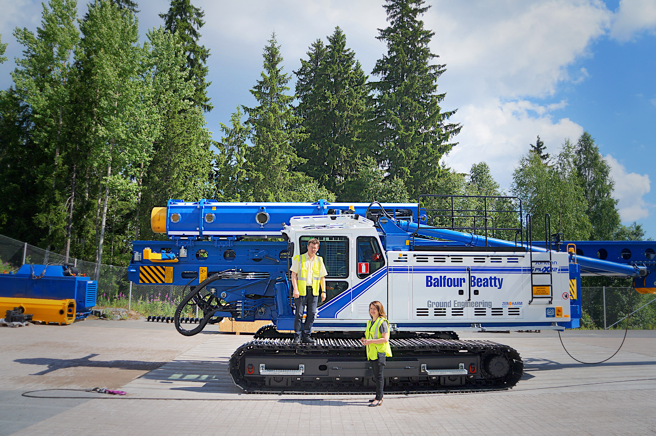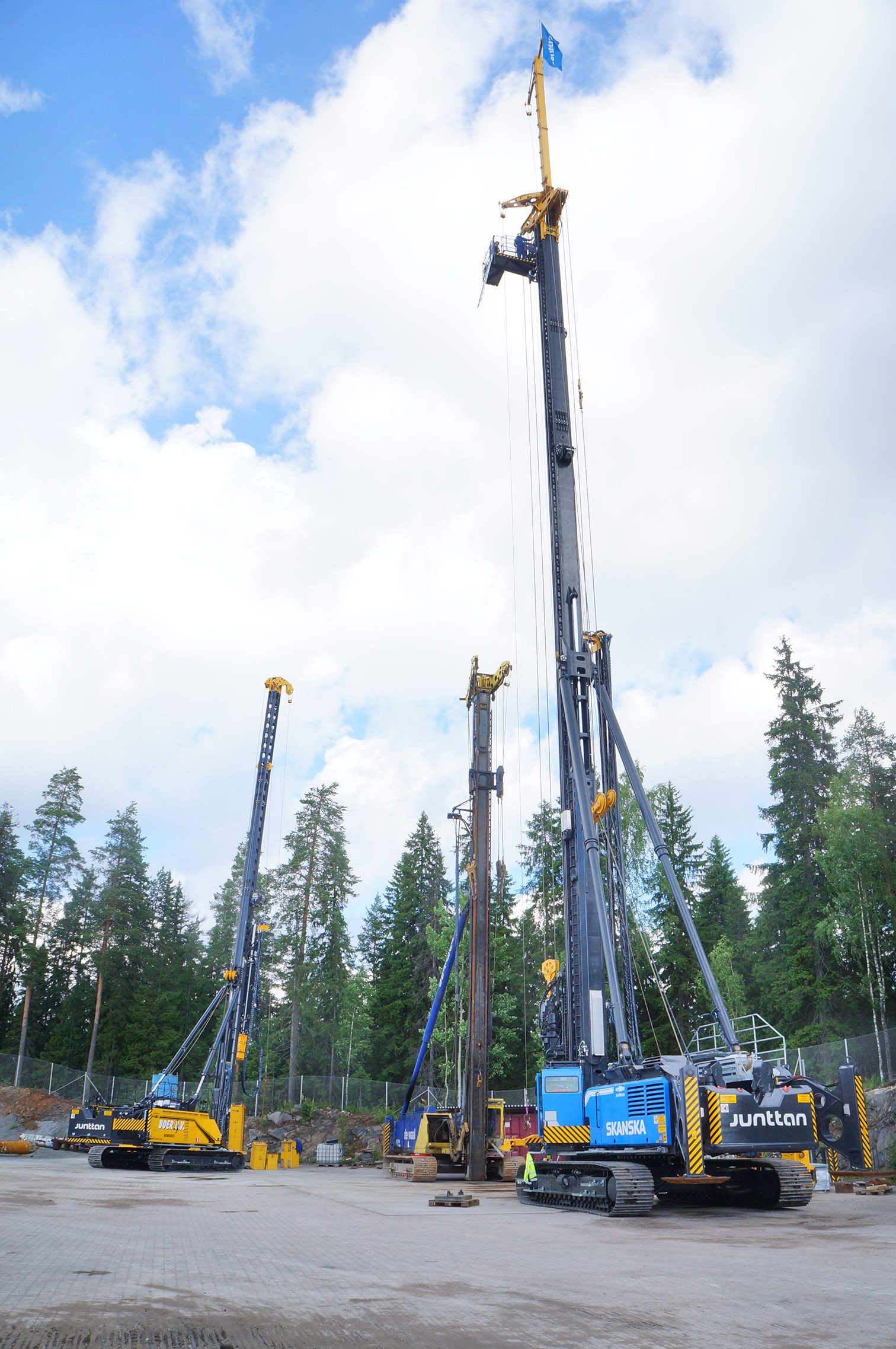 Kuvan paalutuslaite painaa 132 tonnia, ja toimintakuntoisena sen masto on 40 metriä korkea.