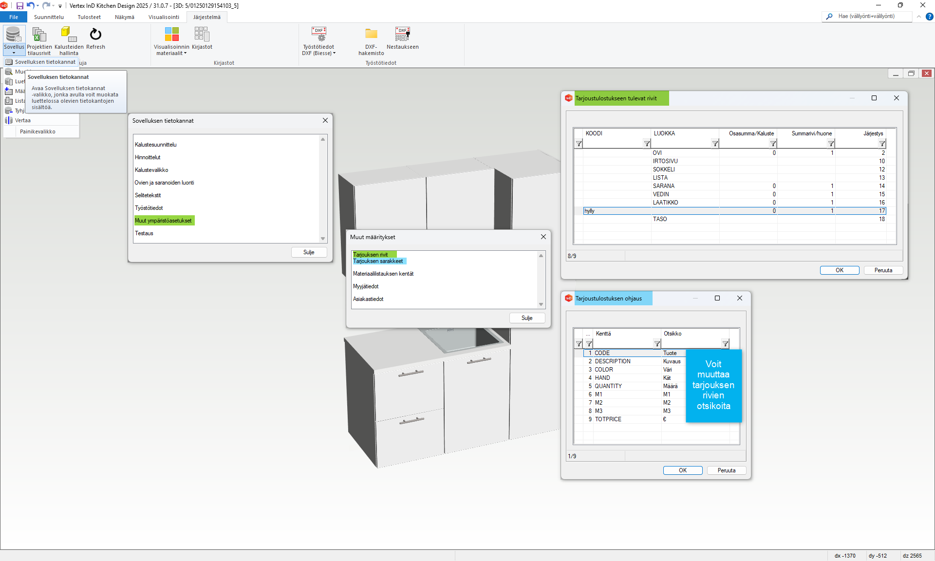 Vertex InD keittiö- ja kalustesuunnittelu uudet ominaisuudet